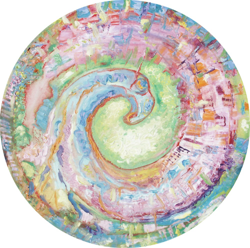| Acrylic and oil on round canvas 2010 Diameter 50 cm Original painting |